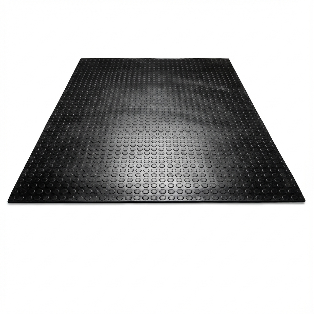 - Raised circle or square pattern mats (all colors): thickness starting from 3 mm, width up to 130 cm, various lengths as rolls or tiles; hardness from 80 Shore to 85 Shore.